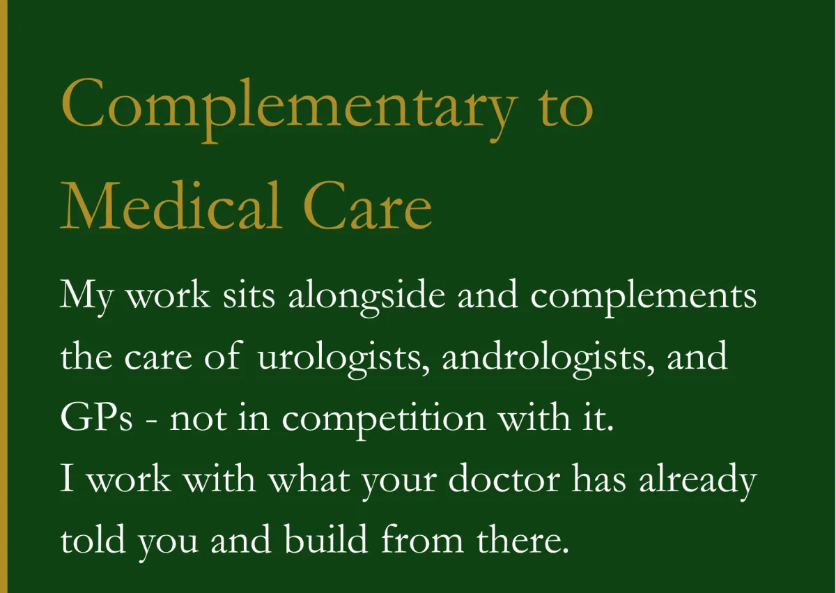 That is what Sanctuary Home exists to provide. A private, deeply personalised approach that treats the man in front of me - not just his symptoms.
